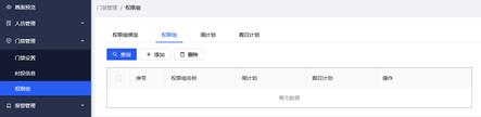 门禁管理有门禁设置、门禁管理、权限组、三部分构成。
