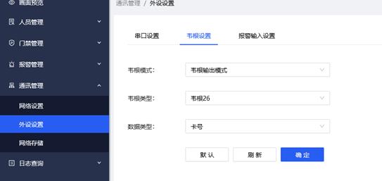 3, 门动作:就是设备识别后的状态默认选项为自动,可选择为常开过常闭。