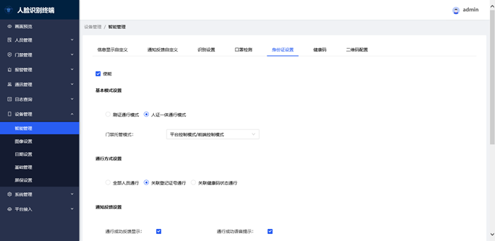 5, 陌生人刷脸通行点击勾选保存后非录入人员也可刷脸通行。