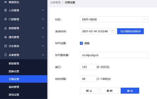 可配置设备系统时间,手动校时以及NTP校时