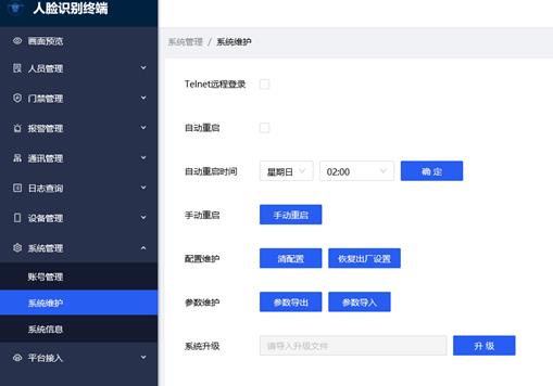 6, 参数导出\导入:可导入导出除网络参数、人员底库和设备日志外的所有参数