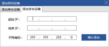 5、 添加设备,用户可以单台添加和多台添加,多台添加时,IP 必须在同一网段,如下图所示: