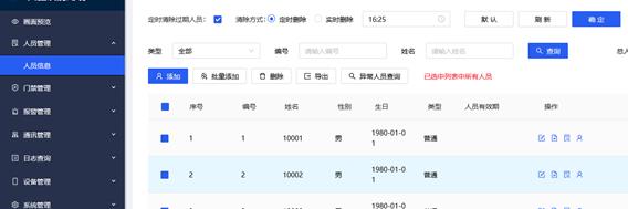 点击异常人员查询,可导出当前设备中不存在人员照片的人员 信息列表