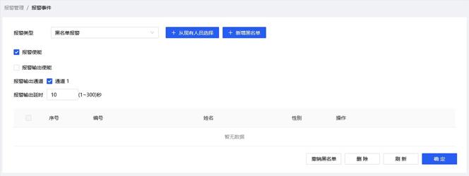 报警类型下拉选择黑名单报警,界面如上图: