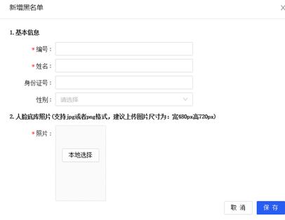 点击 按钮,弹出黑名单人员添加界面