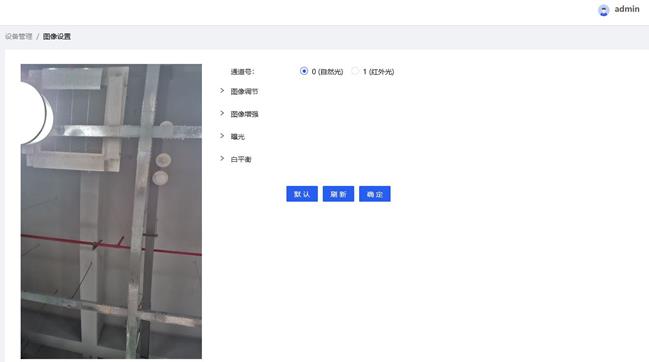 图像设置主要有通道号选择、图像调节、图像增强、曝光和白平衡,界面展示效果如下图所示: