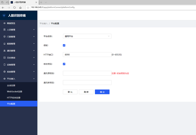 注意:恢复出厂设置会把人脸底库信息删除,请谨慎处理。