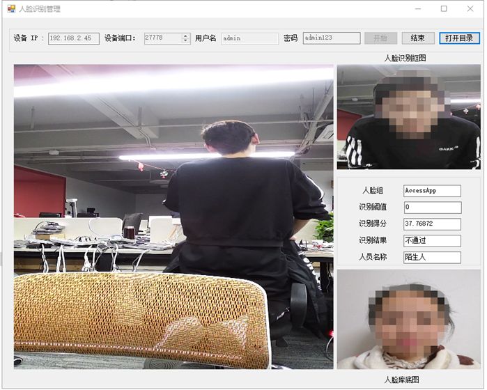 人员名称:会显示人员信息中名字,如果识别不过,则显示陌生人